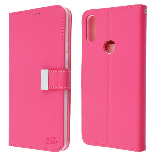 For Alcatel 3V 5032w (2019) PU Leather Wallet with Credit Card Holder Storage Folio Flip Pouch Stand Hot Pink Phone Case Cover