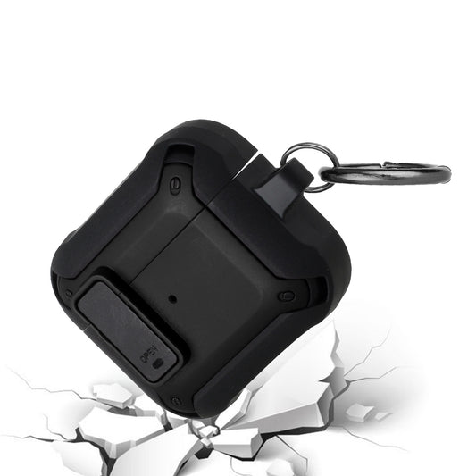 For Apple AirPods Pro Premium Ultra ShockProof Hybrid With Metal Hook Carabiner & Switch Closure Full-Body Rugged Protective Black Phone Case Cover