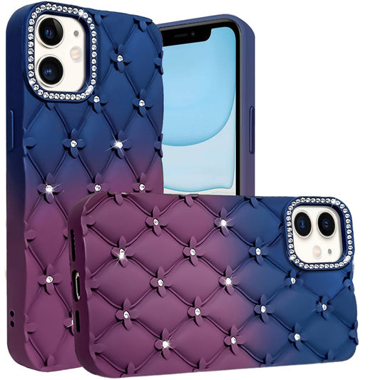 For Apple iPhone 16 Plus (6.7") Fashion Flower Design Sparkle Glitter Shimmer Rhinestone Bling Leather Feel Thick TPU Rubber Hard PC Case Cover