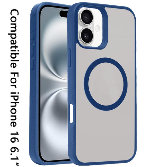 For Apple iPhone 16 (6.1") Matte Skin Hybrid TPU with Magnetic Circle MagSafe Compatible, Military Grade Shockproof Slim Fit Case Cover