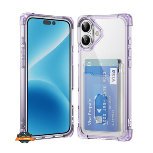 For Apple iPhone 16 Plus (6.7") Wallet Clear Case with Credit Card Holder Rubber Silicone TPU Protection Corner Bumper Shockproof Case Cover