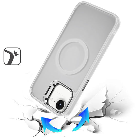 For Apple iPhone 16e /iPhone SE4 Clear Back Hybrid with MagSafe Compatible Metal Camera Stand Colorful Bumper Frame Shockproof Case Cover