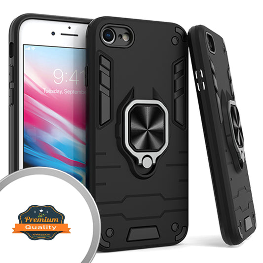 For Apple iPhone SE 3 (2022) Military Grade Heavy Duty Armor Hybrid with Rotating Metal Ring Kickstand Finger Loop Stand Phone Case Cover