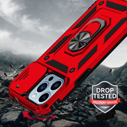 For Apple iPhone SE 3 (2022) SE/8/7 Case with Stand, Camera Lens Protection & 360° Rotate Ring, Shockproof, Soft Bumper Red Phone Case Cover