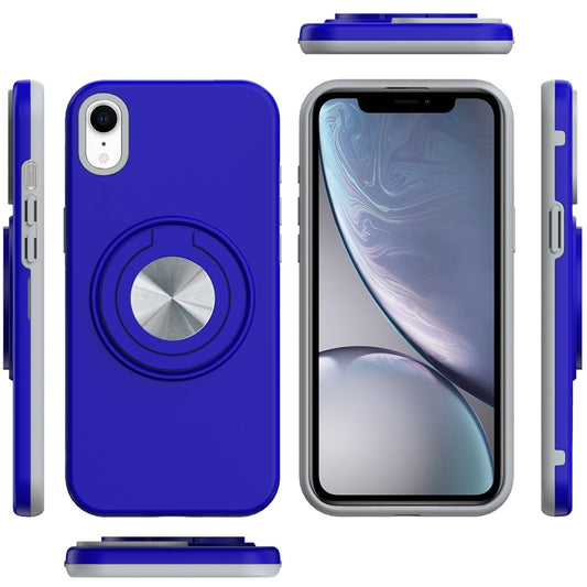 For Apple iPhone XR Metal Matte Hybrid with Invisible Rotational Ring Stand, Car Mount Friendly, Military Grade Slim Fit Sturdy Case Cover