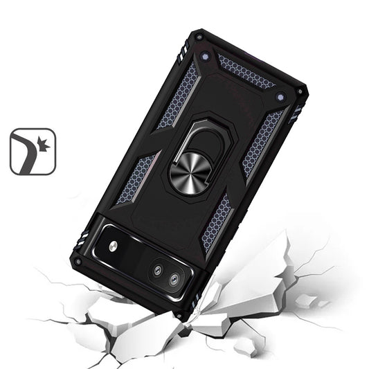 For Google Pixel 6A Shockproof Hybrid Dual Layer PC + TPU with Ring Stand Metal Kickstand Heavy Duty Armor Shell Case Cover