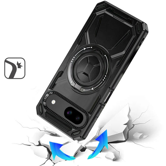For Google Pixel 8A Camera Cover Phone Case with Magnetic Rotation Ring Stand [Military Grade] Hybrid Hard TPU Shockproof Case Cover