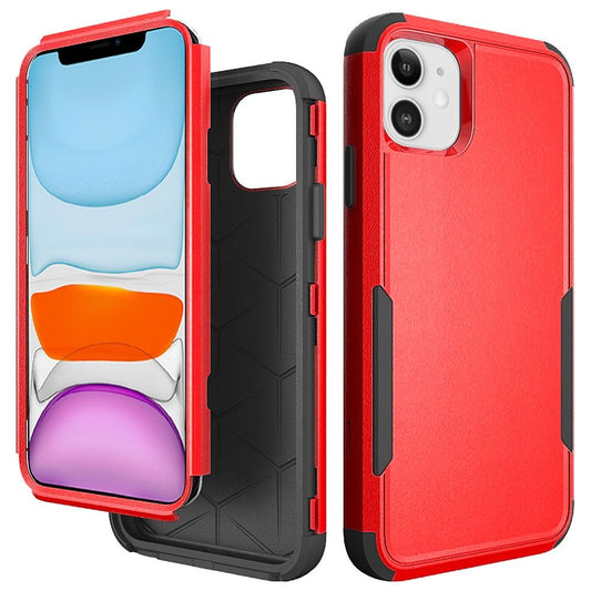 For Apple iPhone 11 (6.1") Hybrid Rugged Hard Shockproof Drop-Proof with 3 Layer Protection, Military Grade Heavy-Duty Red Phone Case Cover