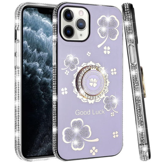 For Apple iPhone 11 Pro Max Diamonds Bling All Around Edges Sparkly Glitter Hybrid Ring Stand Holder Fashion Good Luck Case Cover