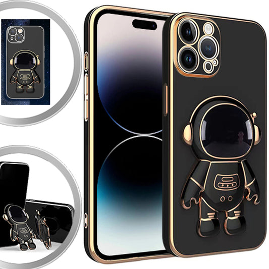 For Apple iPhone 13 /6.1" Astronaut Hidden Stand Holder Plating Hybrid Electroplated Bumper Shockproof Armor Cute Phone Case Cover