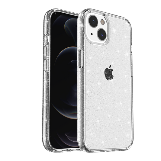 For Apple iPhone 13 Pro Max (6.7") Transparent Glitter Shiny Sparkle Bling TPU Rubber Hard Back Hybrid Armor Frame Phone Case Cover