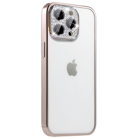 For Apple iPhone 14 /Plus Pro Max Clear Transparent with Color Frame & Diamond Bling Full Camera Lens Raised Phone Case Cover