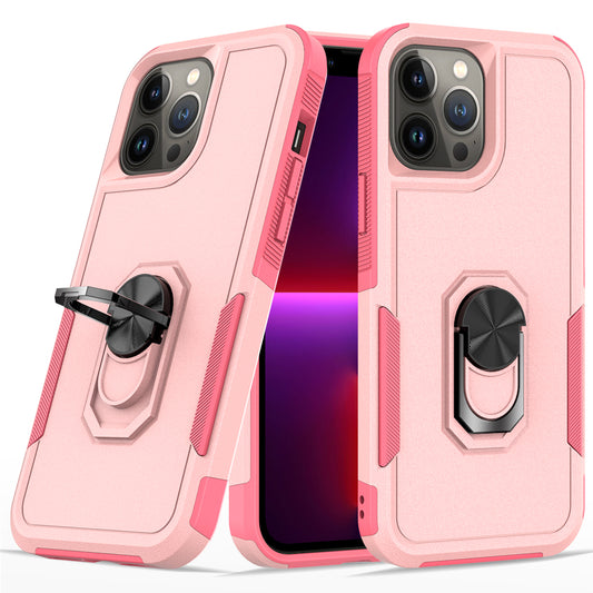 For Apple iPhone 14 Pro (6.1") Hybrid Rugged Hard Drop-Proof 3 Layer Protection Military Grade Armor Metal Ring Stand Pink Phone Case Cover