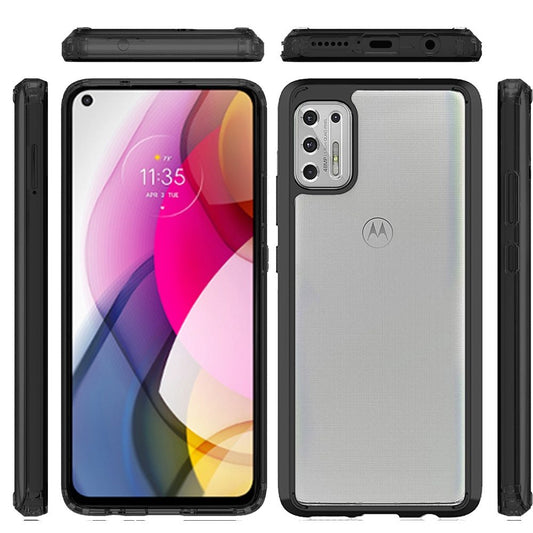 For Motorola Moto G50 5G Hybrid Slim Crystal Clear Transparent Shock-Absorption Bumper with TPU + Hard PC Back Frame Black Phone Case Cover