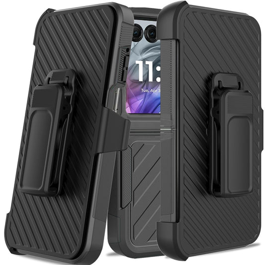 For Motorola Razr 2024 Premium Design Hybrid lined with Belt Clip Holster Shockproof Rugged Textured 2in1 Non Slip Tough Case Cover Black