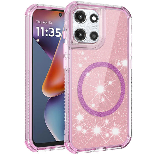 For Motorola Moto G 5G /Moto G 2025 Magnetic Circle Compatible with Magsafe, Bling Glitter Sparkle 3-in-1 Hybrid Shockproof TPU Bumper Case Cover