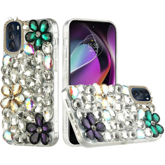 For Motorola Moto G 5G 2022 Bling Crystal 3D Full Diamonds Luxury Sparkle Transparent Rhinestone Hybrid Protective Phone Case Cover