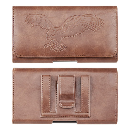 For Samsung Galaxy A23 5G Universal Horizontal Leather Phone Case with Embossed American Eagle Pouch Belt Clip Holster & Magnetic Pouch [Brown]
