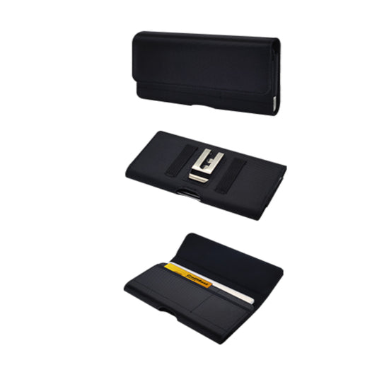 For Apple iPhone 16 Pro Max (6.9") Universal Nylon Canvas Horizontal Pouch Holster with Wallet Credit Card Slots & Belt Loop Clip Carrying Phone (7.0") [Black]