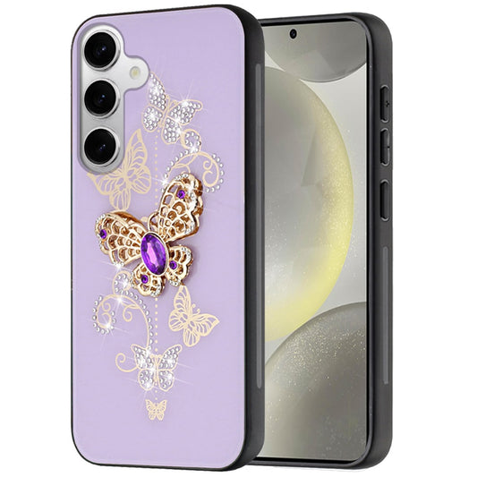 For Samsung Galaxy S25+ /S25 Plus /S24+ Plus 3D Diamond Floral Butterfly Bling Stone Hybrid, Sparkly Rhinestone Gemstone Back Shockproof Case Cover