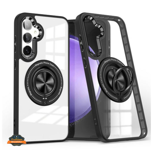 For Samsung Galaxy S25+ S25 Plus /S24+ Clear Transparent Back Hybrid with Rotating Ring Stand, MagSafe Compatible Shockproof Slim TPU PC Case Cover