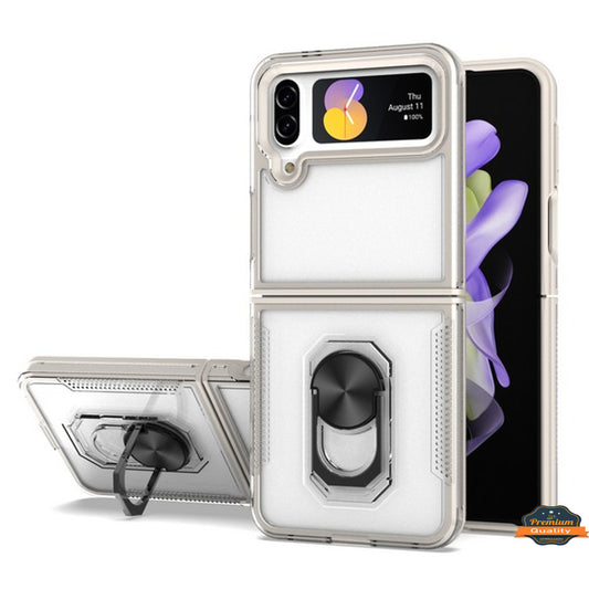 For Samsung Galaxy Z Flip 4 5G Ring Holder Case Heavy Duty Rubber Bumper Non-Slip Grip Magnetic Kicstand Clear Protection Phone Case Cover
