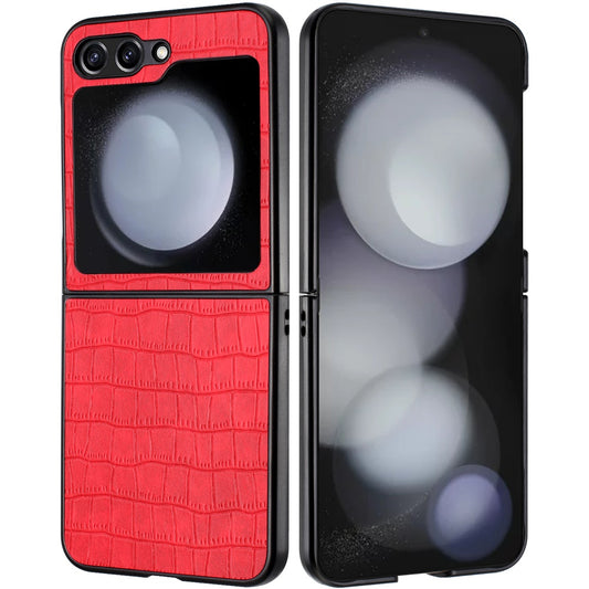 For Samsung Galaxy Z Flip 7 FE PU Vegan Leather Case, Premium Snap-On Hard Shell Cover, Slim Fit Protective Matte Finish Case Cover