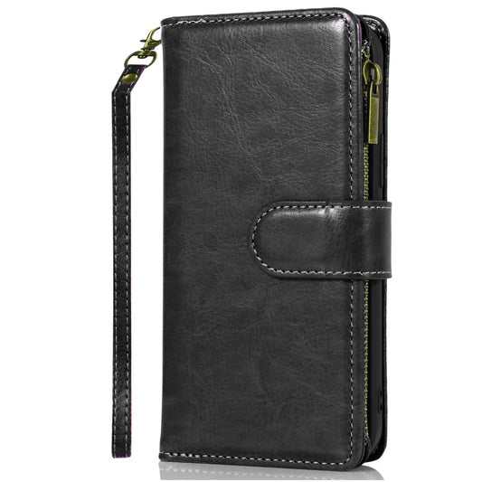 For Samsung Galaxy A16 5G PU Leather Zipper Wallet Case 9 Credit Card Slots Cash Money Pocket Clutch Pouch with Stand & Strap Case Cover Black