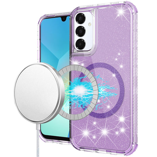 For Samsung Galaxy A16 5G Magnetic Ring Circle Glitter Bling Sparkle 3in1 Hybrid [Compatible with Magsafe] Clear Shockproof Case Cover
