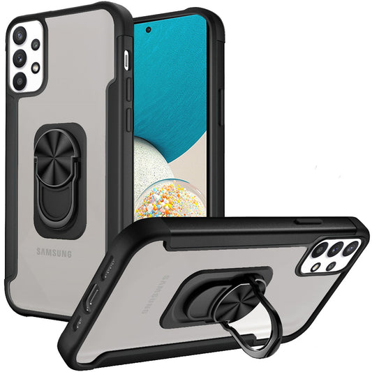 For Samsung Galaxy A53 5G Finger Ring Stand Holder Kickstand Hybrid Frosted Matte Soft TPU Hard PC Frame Shock-Absorption Phone Case Cover