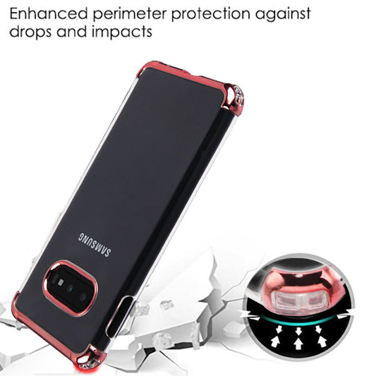 For Samsung Galaxy S10E Slim Hybrid Transparent Rubber Gummy Hard PC Silicone Electroplating Protective Clear / Rose Gold Phone Case Cover