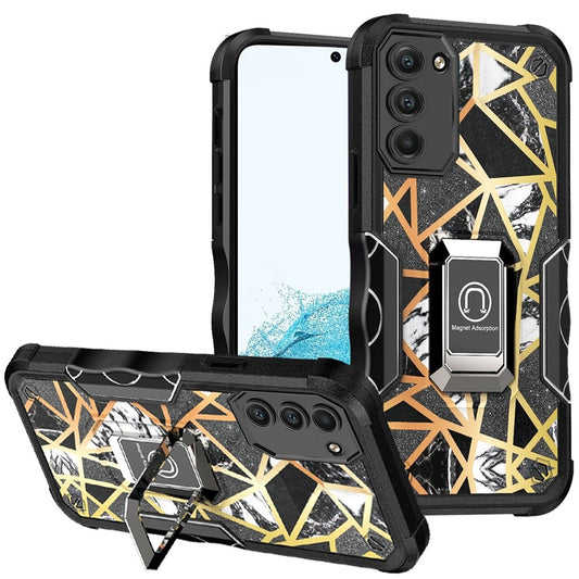 For Samsung Galaxy S22 /Plus Ultra Marble IMD Design Hybrid Armor with Magnetic Ring Stand Heavy Duty Rugged Shockproof Phone Case Cover