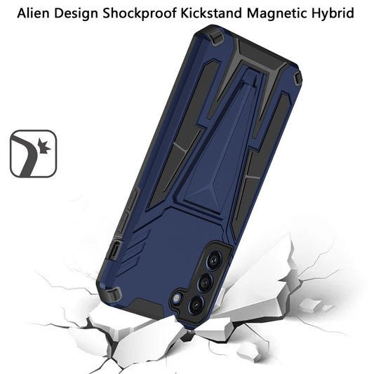 For Samsung Galaxy S22 Hybrid Armor Rugged with Kickstand, Supports Magnetic Car Mount Dual Layer Hard PC Protective Blue Phone Case Cover