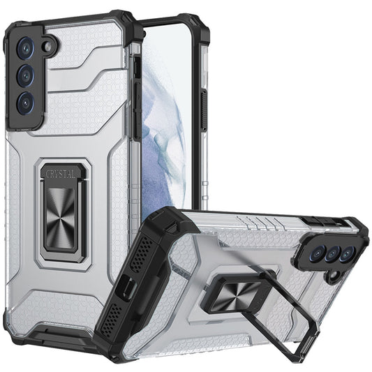 For Samsung Galaxy S22 Transparent Magnetic Ring Stand Hybrid with 360 Degree Rotation Kickstand Armor Bumper Defender Phone Case Cover