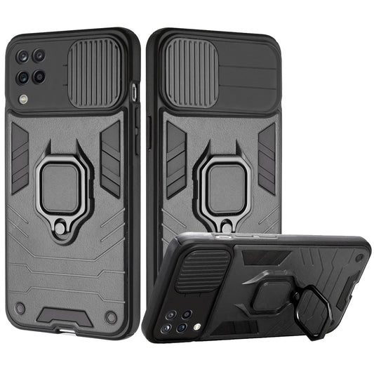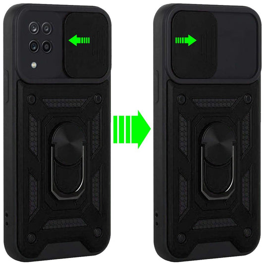 For Samsung Galaxy A12 5G Hybrid Cases with Slide Camera Lens Cover and Ring Holder Kickstand Rugged Dual Layer Heavy Duty Hard Phone Case Cover