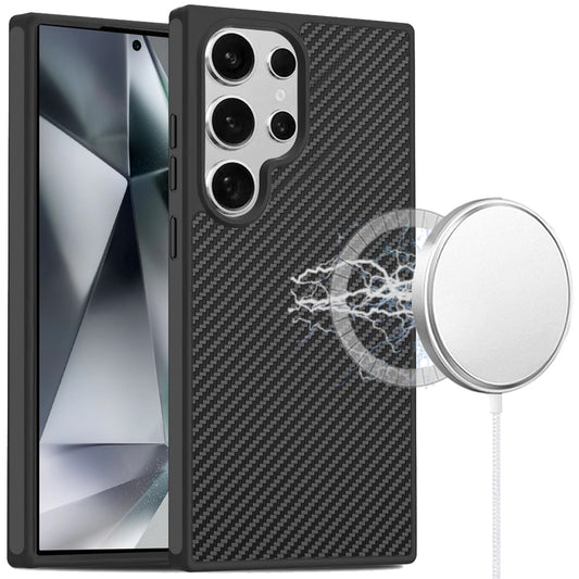 For Samsung Galaxy S24 Ultra Carbon Fiber Design with Magnetic HQ 2.0mm Thick Hybrid Shockproof Rubber Hard PC Case Cover Black