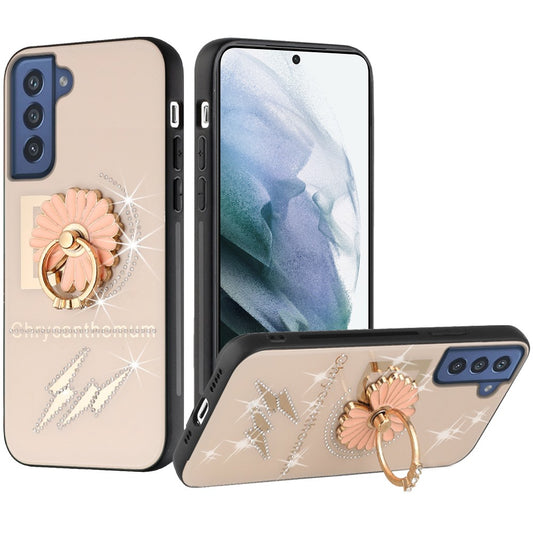 For Samsung Galaxy S22 /Plus Ultra Diamond Bling Sparkly Glitter Ornaments Engraving Hybrid with Ring Stand Holder Fashion Phone Case Cover