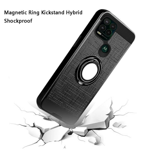 For Motorola Moto G Pure Hybrid Ring Stand Brushed with 360 Degree Rotating Ring Magnetic Bracket 2in1 Armor Texture Rugged Phone Case Cover