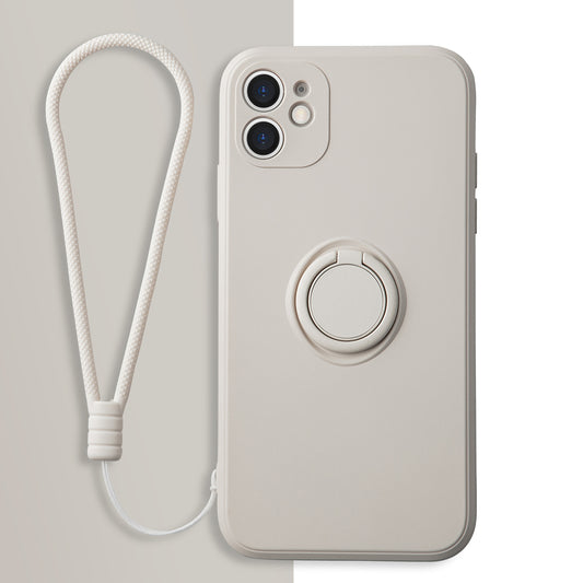 For Apple iPhone 13 /Pro Max Hybrid Liquid Silicone with Ring Stand Holder Stand Strap Microfiber Liner Shock Absorption Gel Rubber Protection Phone Case Cover