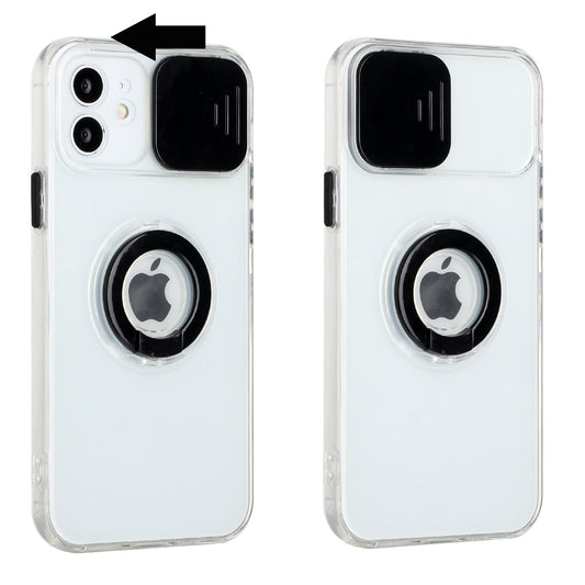 For Apple iPhone 13 (6.1") Transparent Cases with Ring Stand & Camera Window, Slide Lens Protection Slim Hybrid Shockproof Phone Case Cover