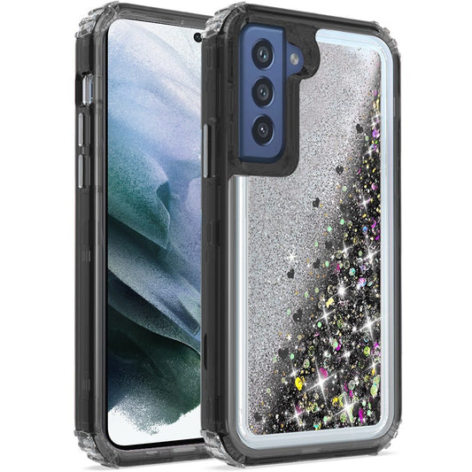 For Apple iPhone 13 Pro Max (6.7") Luxury Floating Glitter Case Sparkle Bling Quicksand Clear Heavy Duty Bumper Dual Layer PC Frame TPU Back Phone Case Cover