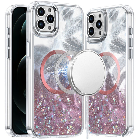 For Apple iPhone 15 Pro Max Epoxy Glitter Shimmer Fashion Case with Magnetic Magsafe Compatible Hybrid Sparkling Slim Protective Case Cover Light Pink