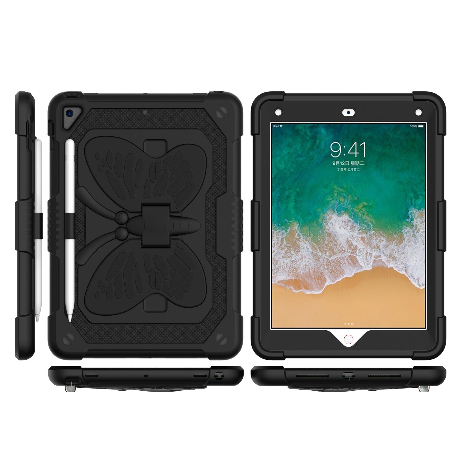 Case for Apple iPad Air 4 / iPad Air 5 / iPad Pro (11 inch) Butterfly Wings Kickstand 3in1 Tough Hybrid with Pencil Holder Heavy Duty Rugged Shockproof Full Protective Black Tablet Cover