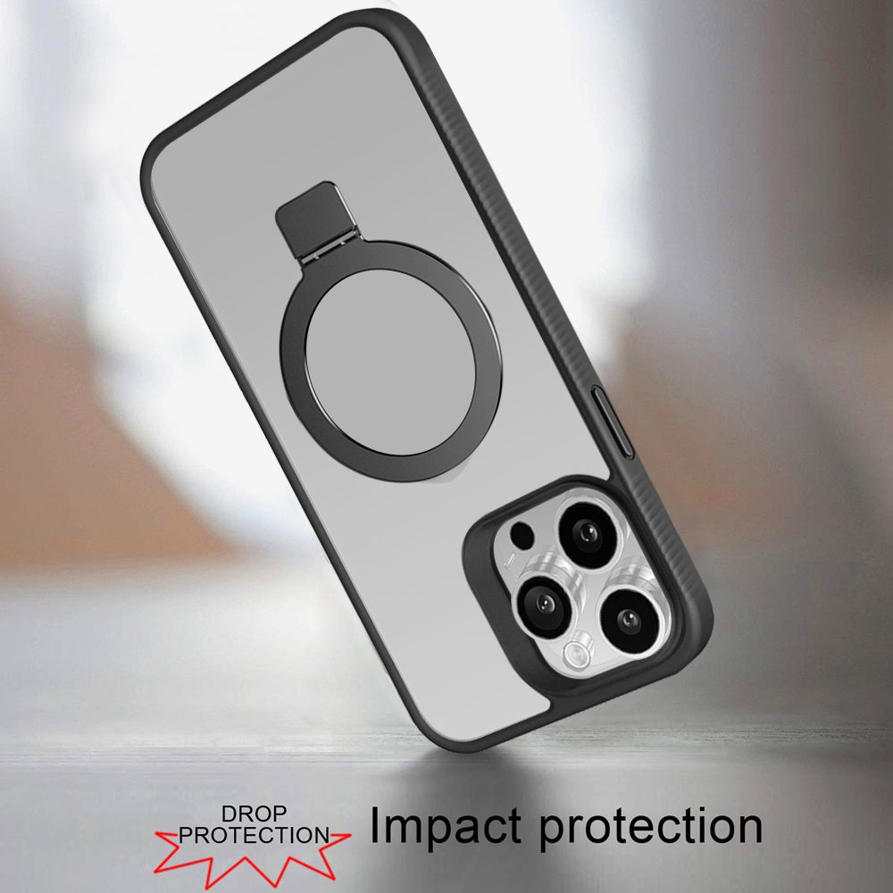 Black Cell Phone Case Cover For iPhone 11 Pro Max Invisible Stand Magnetic Case Military Grade Shockproof Matte Slim Phone Cover Ring Holder [Compatible with MagSafe] Magnetic Circle Stans Phone Cover. The premium case made of high-grade hard PC material, and TPU material bumper to provide shock-proof protection,effectively protect your phone against everyday drops and bumps
