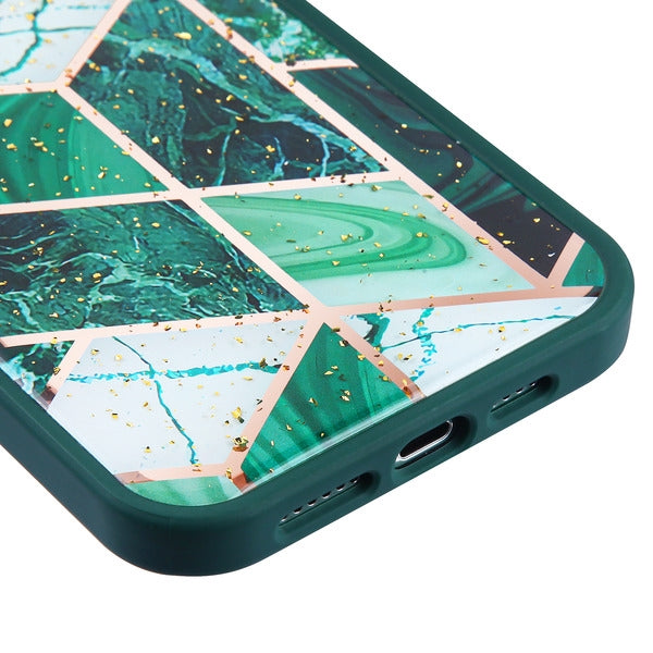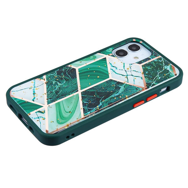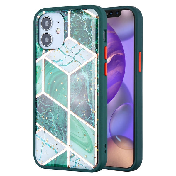 For Apple iPhone 12 Mini (5.4) Marble Stylish Design Hybrid Rubber TPU Hard PC Shockproof Armor Rugged Slim Green Marbling Phone Case Cover