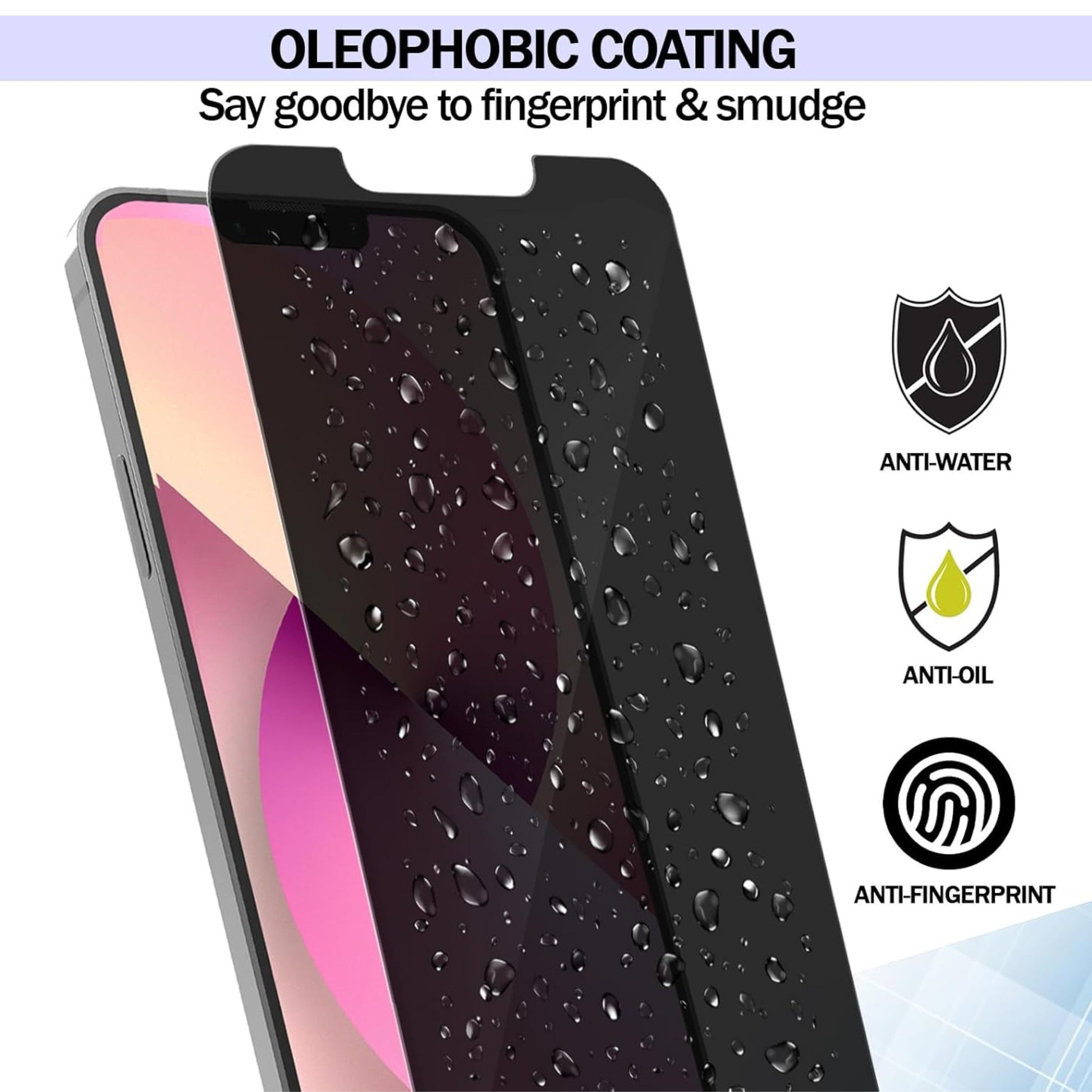 Black Screen Protector For iPhone 13 Mini Keep your personal information secure with this privacy tempered glass screen protector for iPhone 14. Designed to limit screen visibility from side angles, it helps protect your privacy in public settings. With 9H hardness, it provides superior protection against scratches and drops. The anti-fingerprint coating maintains screen clarity, while the easy-to-install adhesive ensures a bubble-free application. It's also case-friendly, making it the perfect addition to your phone's protection setup.
