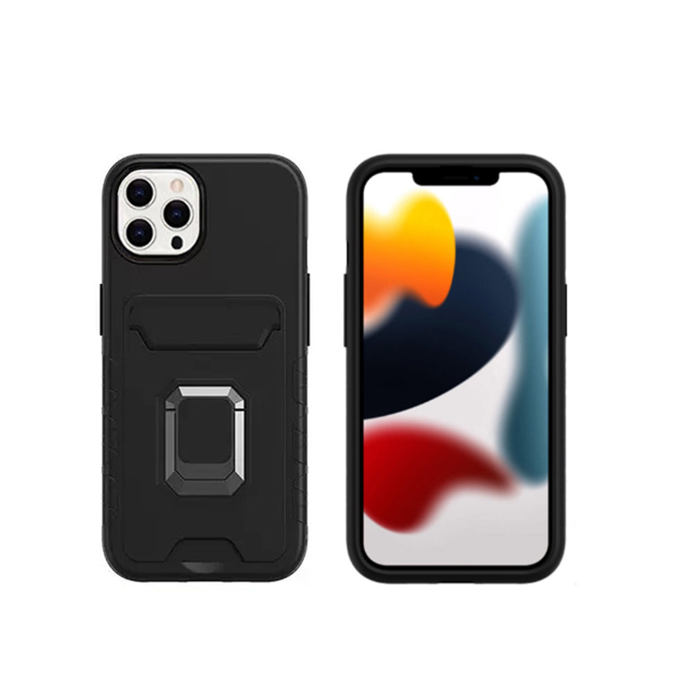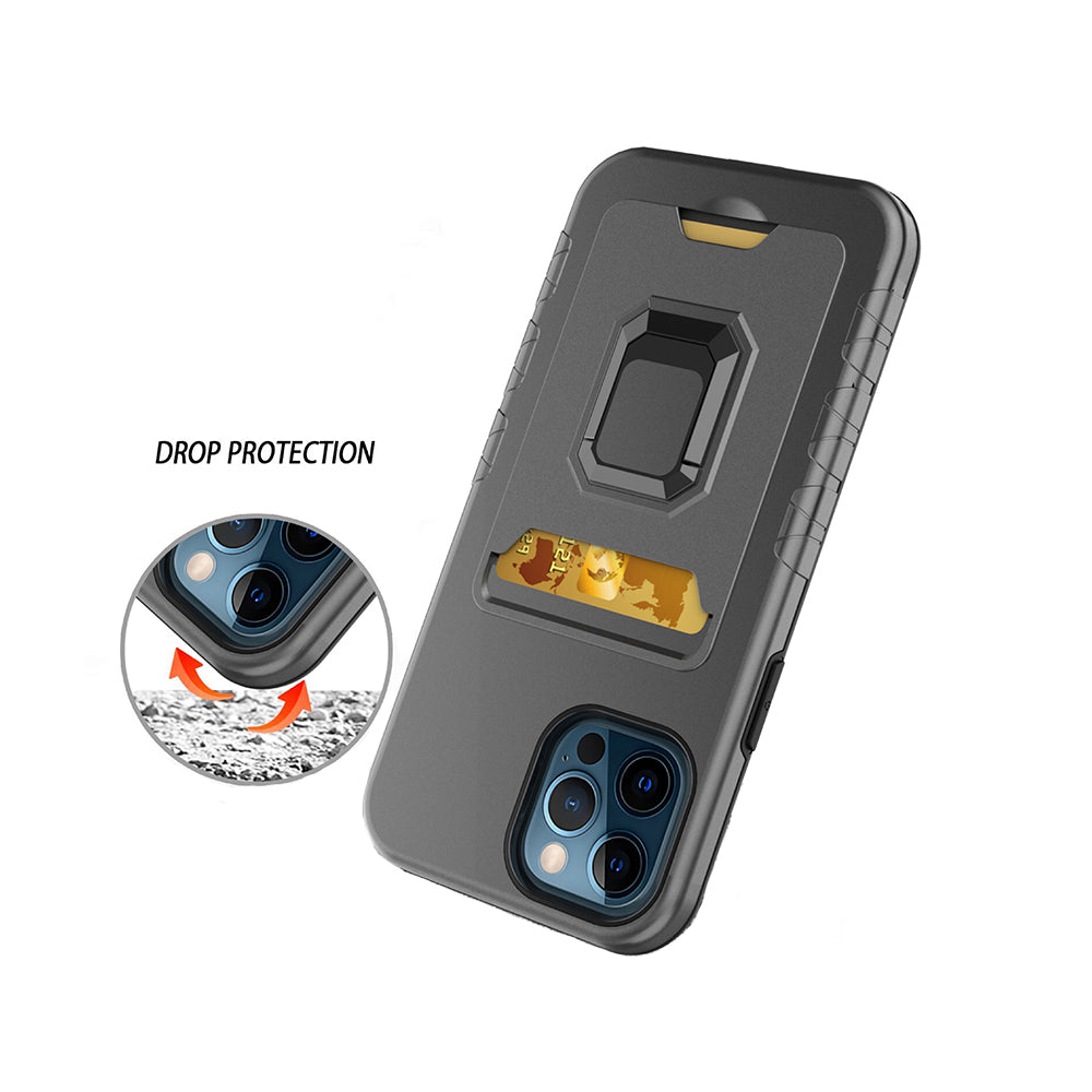Apple iPhone 13 /Pro Max Credit Card Holder Slot with Stand Kickstand Ring Hybrid Heavy Duty Defender Armor TPU Military Grade