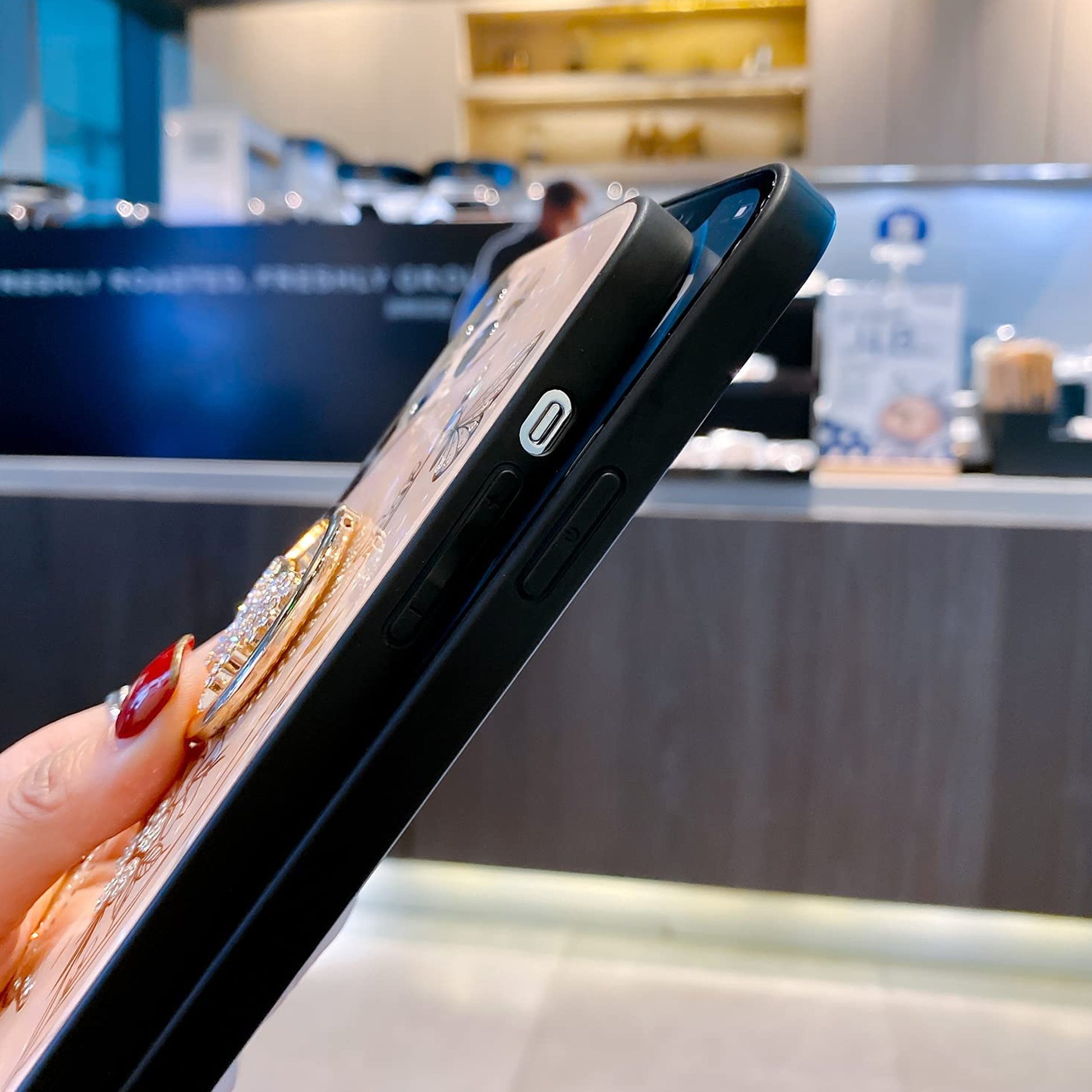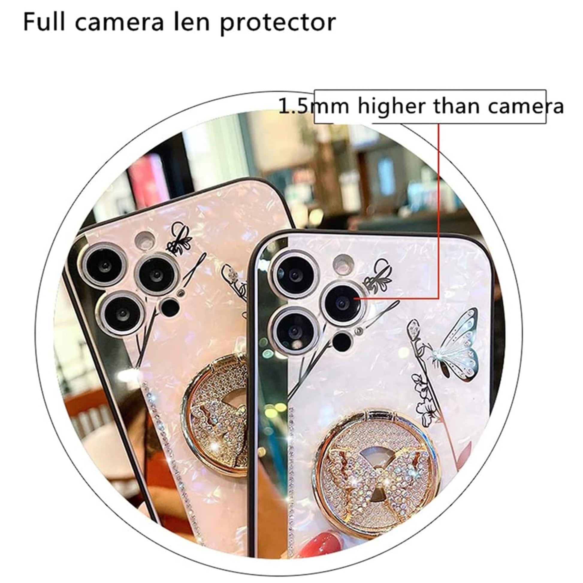 • Beautiful Ring Stand Holder: Colorful sparkly gems butterfly kickstand made by plating gold material brings a luxury metallic feeling, feels smooth and very useful for watching videos