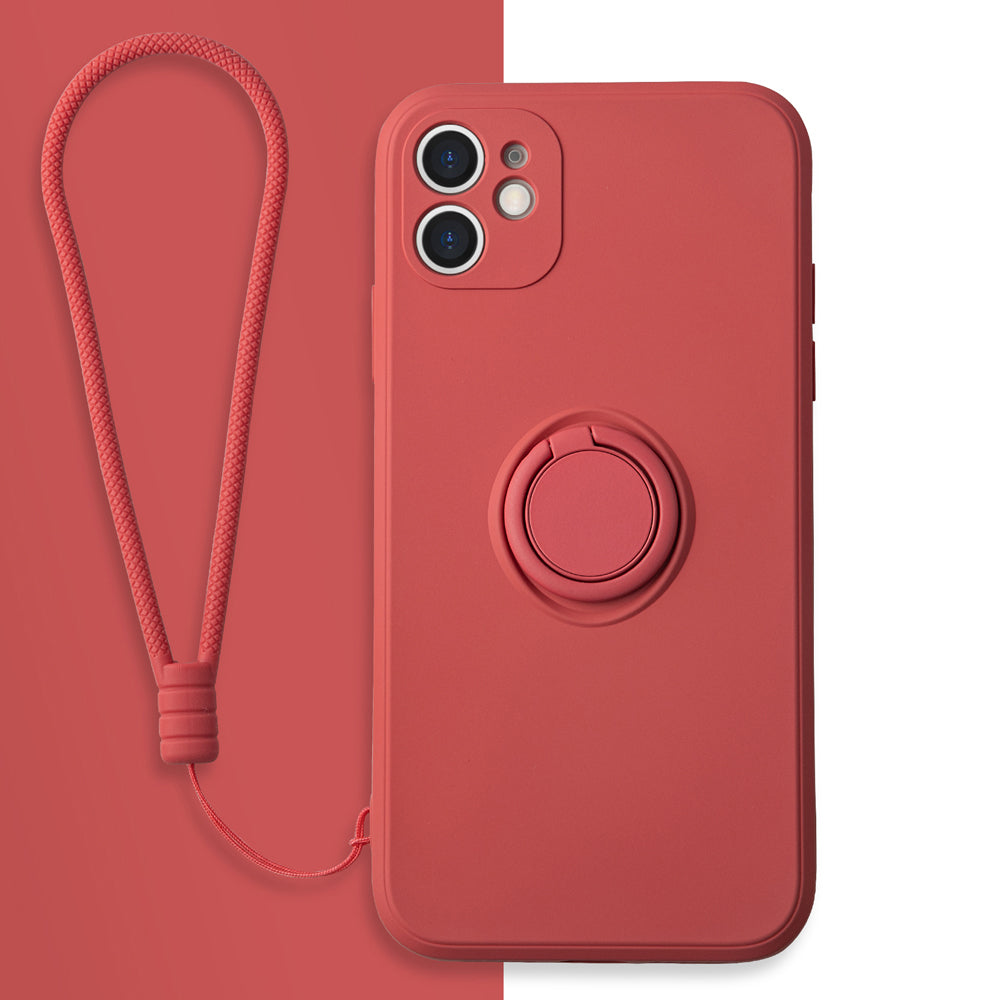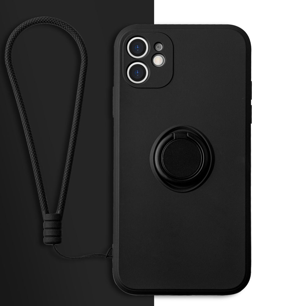 Slim Silicone Soft Gel Rubber Microfiber Lining Cushion Shockproof Protective Cover with 360° Ring Holder Kickstand and Lanyard, Shock Absorption Gel Rubber Full Body Protection Cover (Support Car Mount),