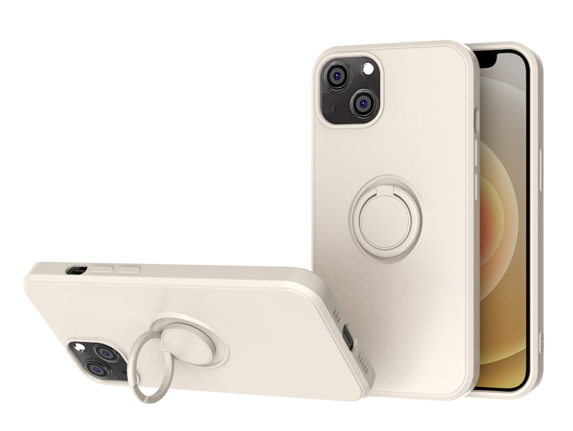 Apple iPhone 13 /Pro Max Hybrid Liquid Silicone with Ring Stand Holder Stand Strap Microfiber Liner Shock Absorption Gel Rubber Protection